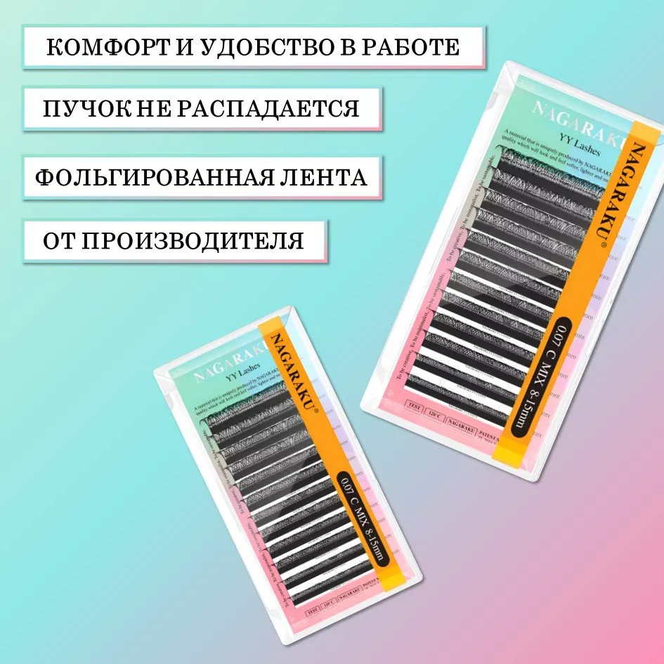 Ресницы пучки черные YY 12 линий Nagaraku C 0.07 8-15, 2 шт
