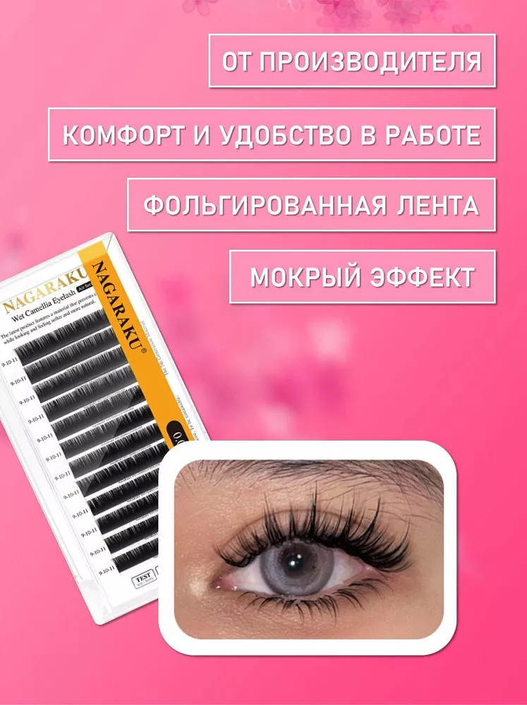 Ресницы Nagaraku с мокрым эффектом 12 линий D 0.07 9-11, 2 шт