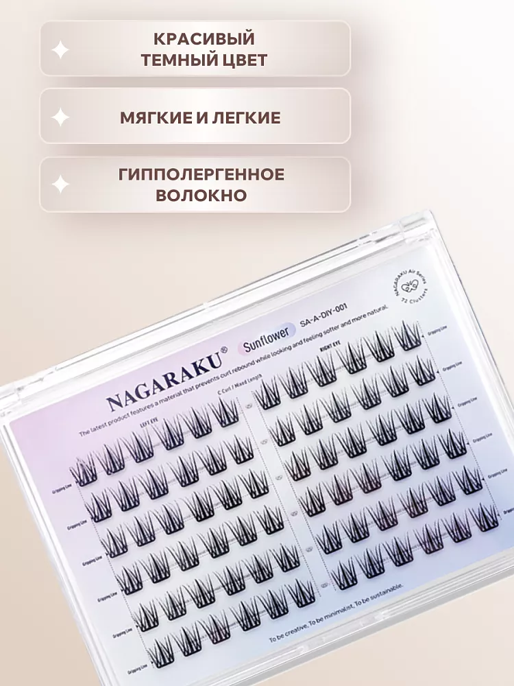 Ресницы пучки самоклеющиеся Nagaraku Sunflower Style C 72 пучка, 2 шт