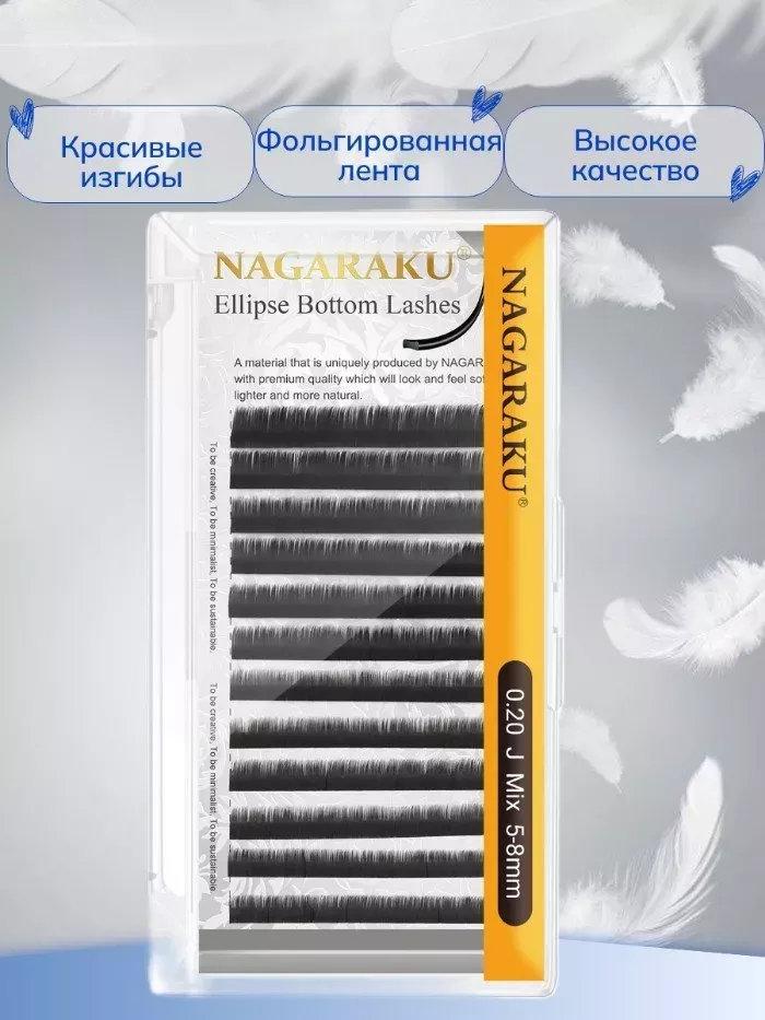 Ресницы NAGARAKU Premium Ellips древесный уголь 12 линий C 0.15 8, 2 шт