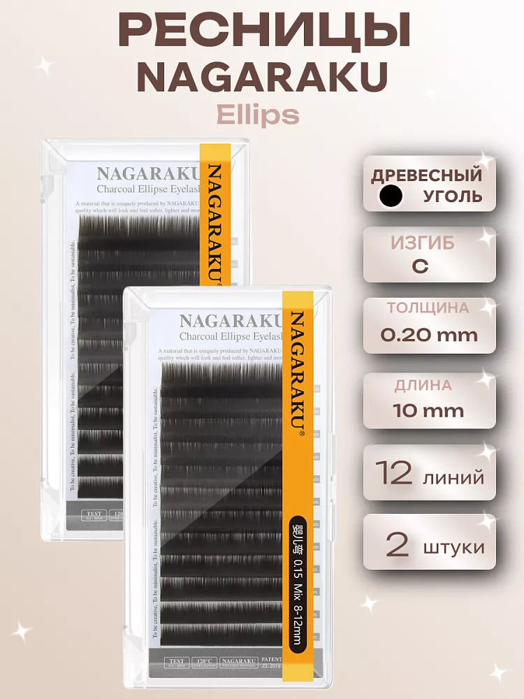Ресницы NAGARAKU Premium Ellips древесный уголь 12 линий C 0.20 10, 2 шт