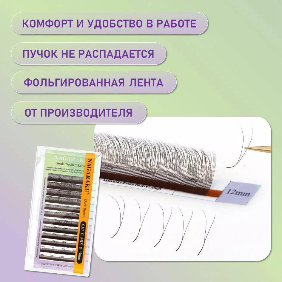 Ресницы пучки 2D Single tip темно-коричневые 12 линий Nagaraku D 0.07 8-15, 2 шт