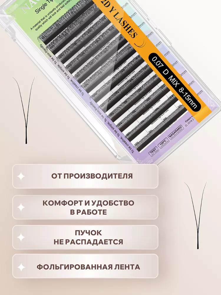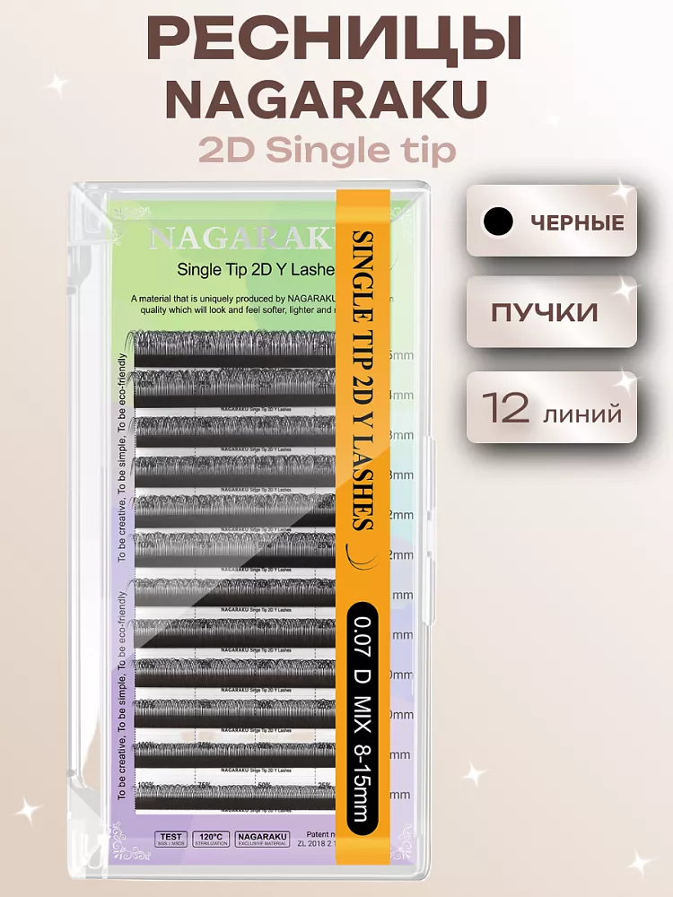 Ресницы пучки 2D Single tip черные 12 линий Nagaraku