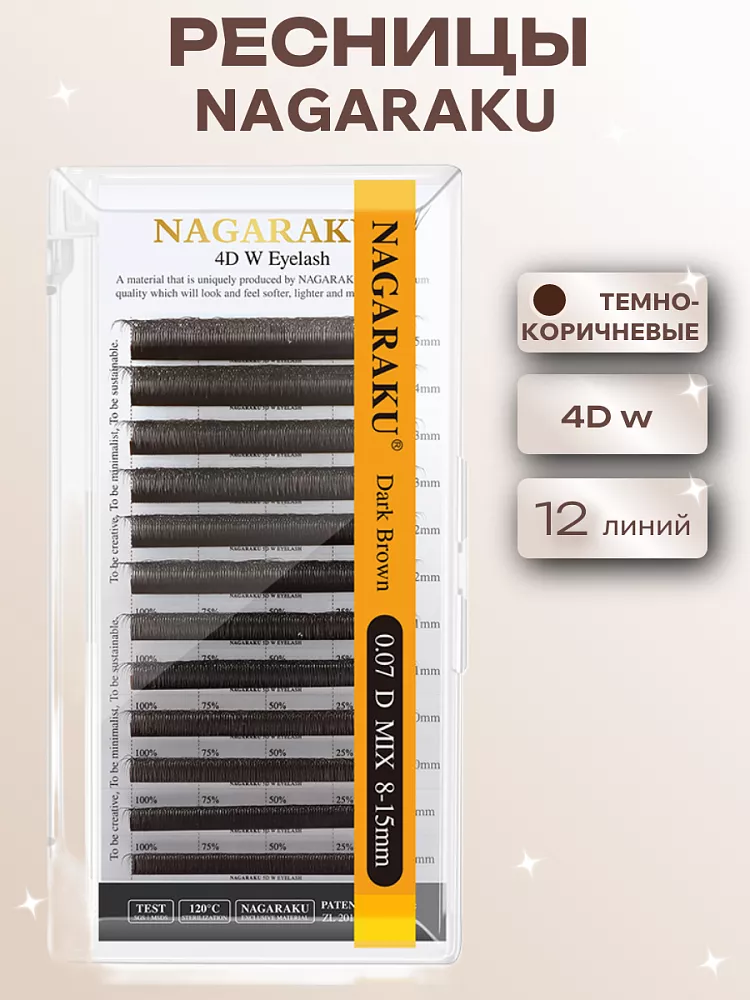 Ресницы пучки темно-коричневые 4D w 12 линий Nagaraku