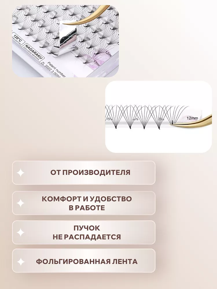 Ресницы готовые пучки Nagaraku 7D D 0.07 8-15, 2 шт
