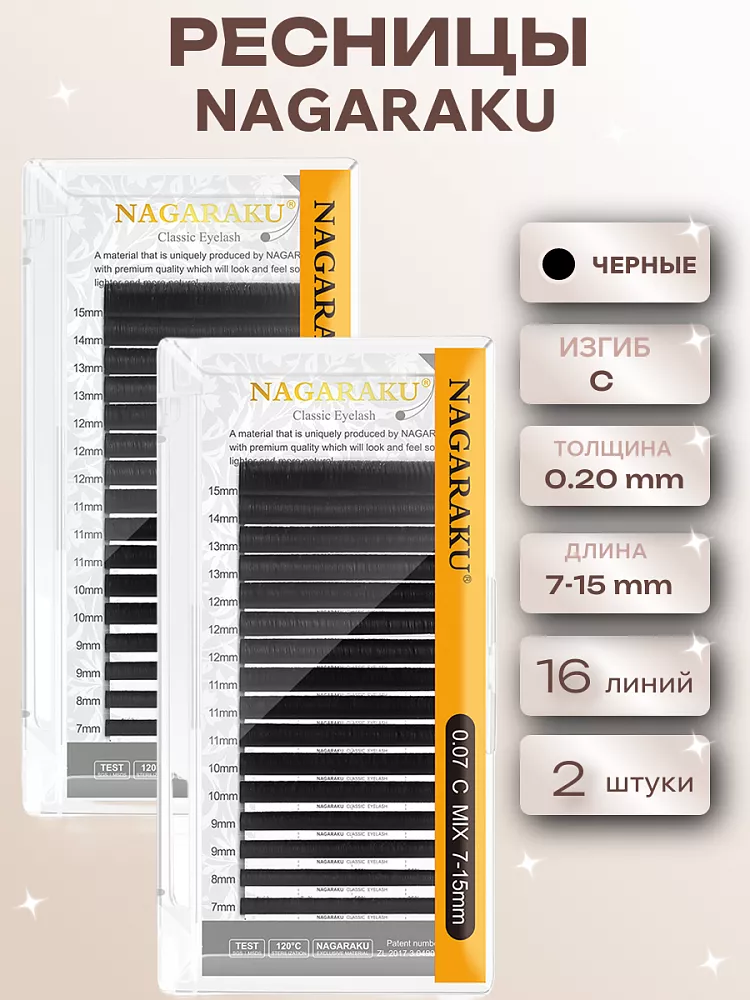 Ресницы Nagaraku, C 0.20 7-15, 16 линий, 2 шт