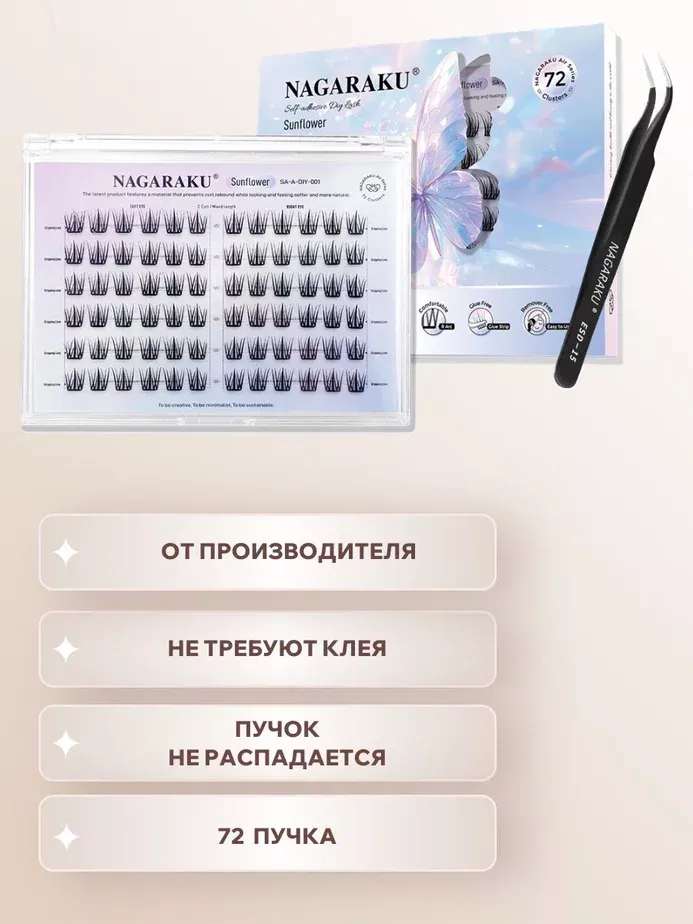 Ресницы пучки самоклеящиеся Nagaraku Sunflower Style + пинцет в подарок