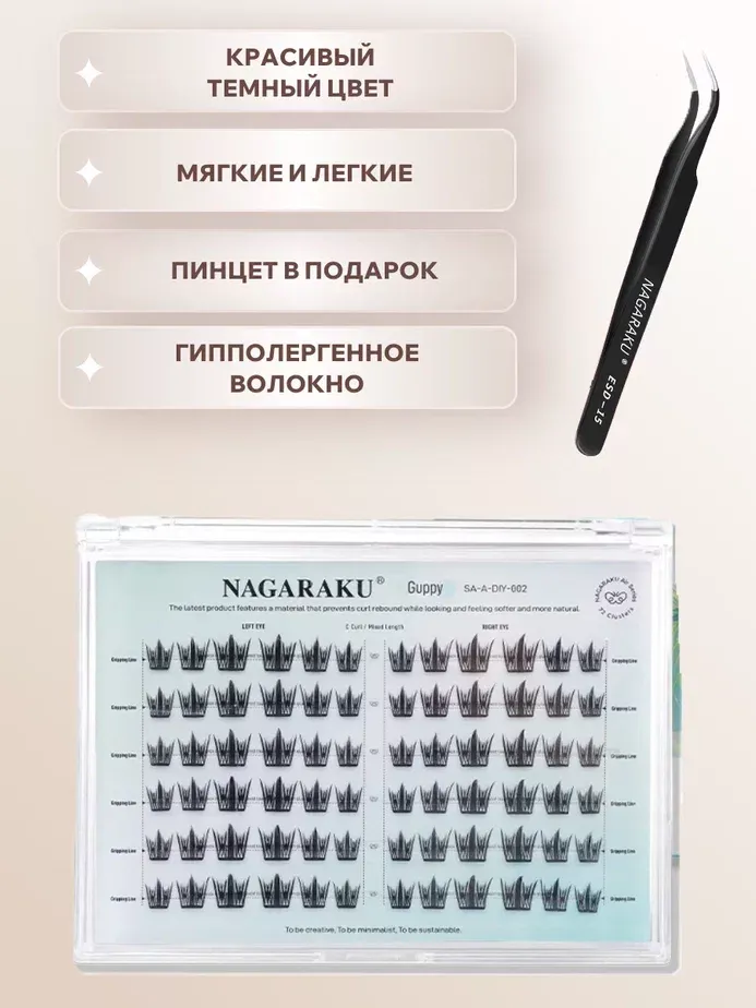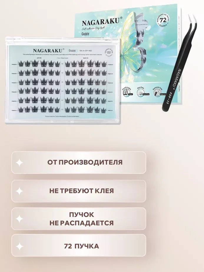 Ресницы пучки самоклеящиеся Nagaraku Guppy Style + пинцет в подарок