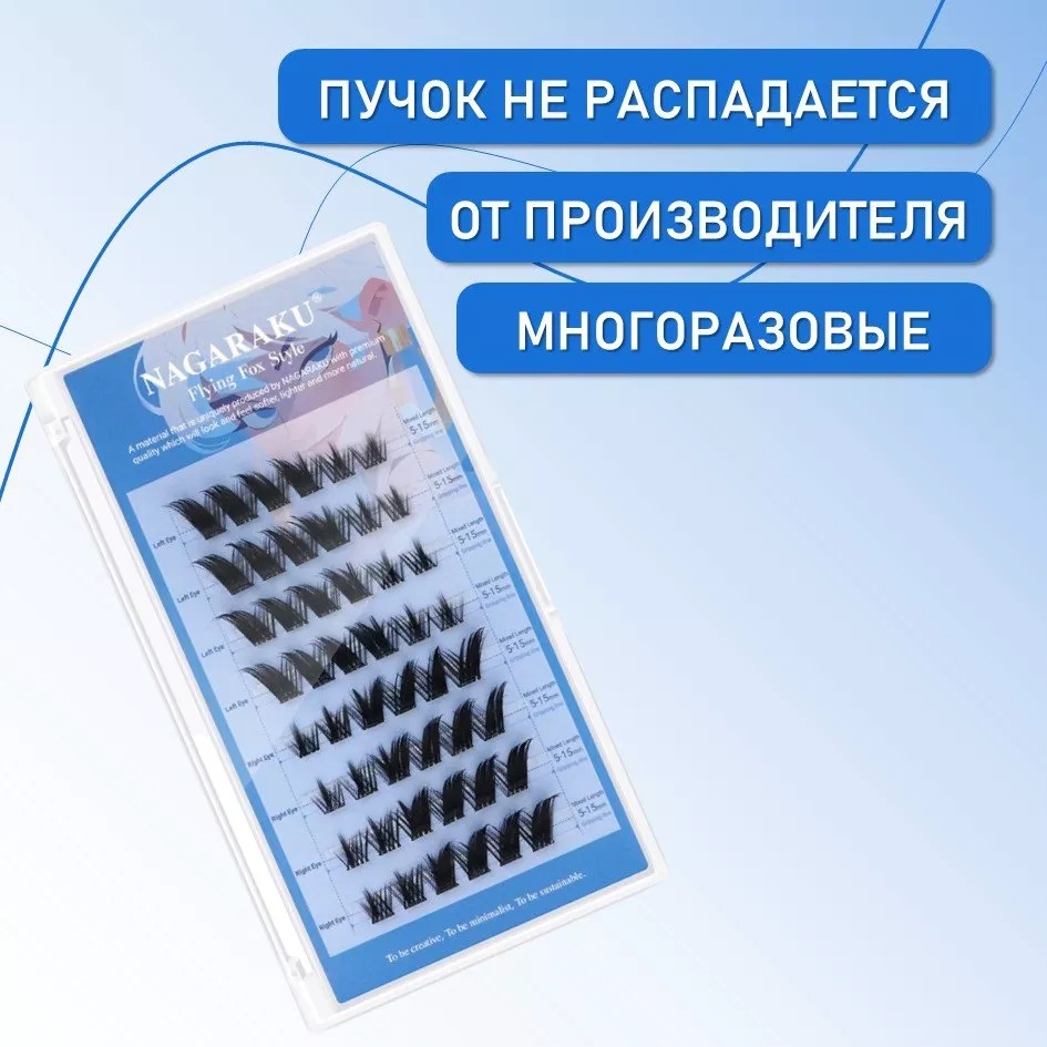 Многоразовое использование: при правильном уходе пучки ресниц можно использовать несколько раз.
