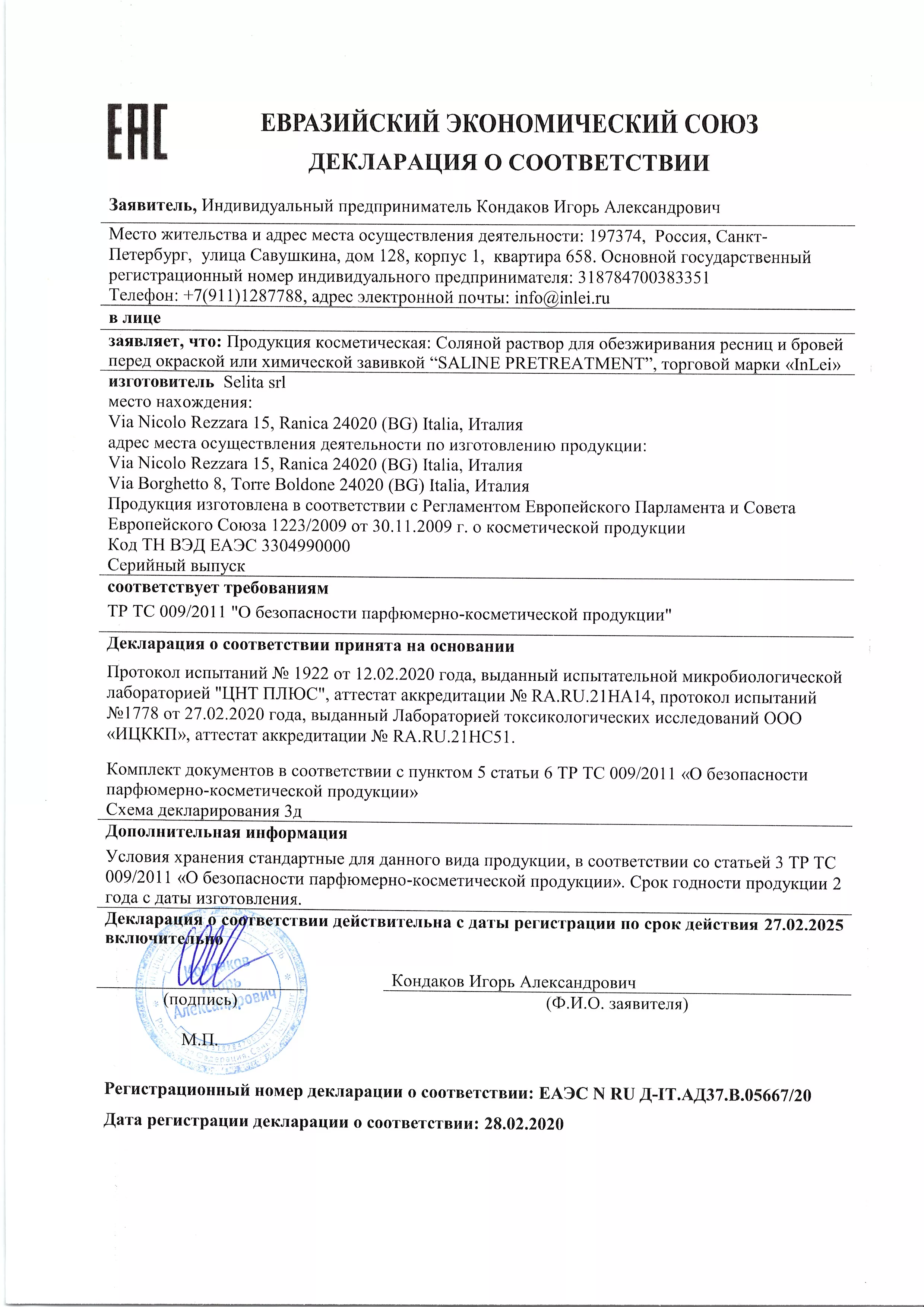 Способ применения: С помощью ватного тампона, пропитанного IN LEI® “SALINE PRETREATMENT”, обезжирьте ресницы, брови и контур вокруг глаз.