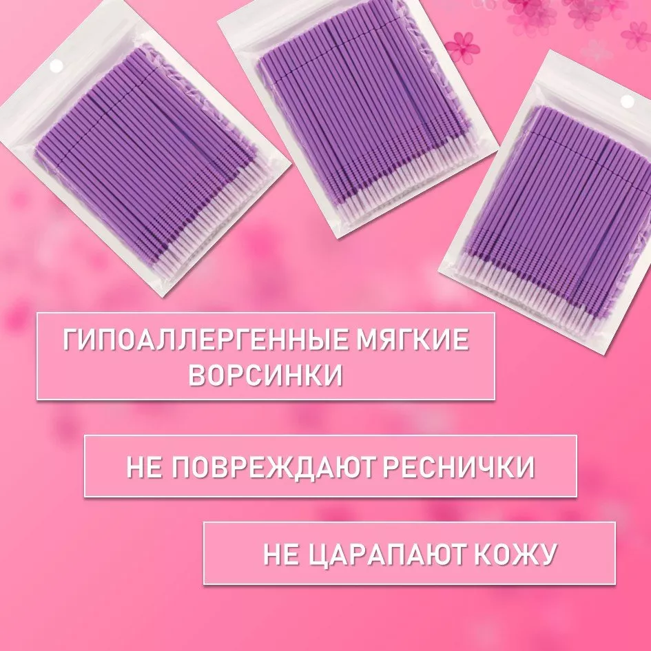 Микробраши фиолетовые с длинным наконечником, 100шт/уп