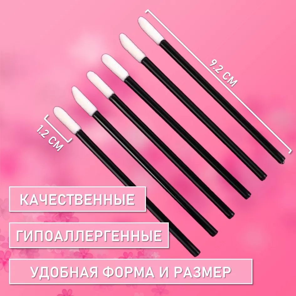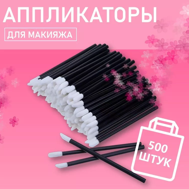 Набор Аппликатор для теней, помады, кисть для губ, глаз и макияжа черный 500шт // 10 уп