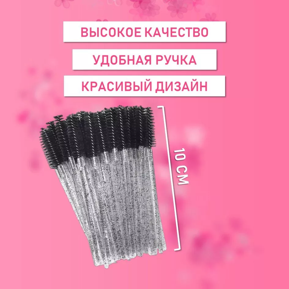 Ворсовые щеточки для ресниц с блестками черные 50 шт