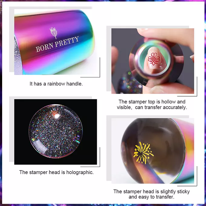 Born Pretty, Штамп 45934-02 Rainbow Handle Holo Transparent, 1 шт
