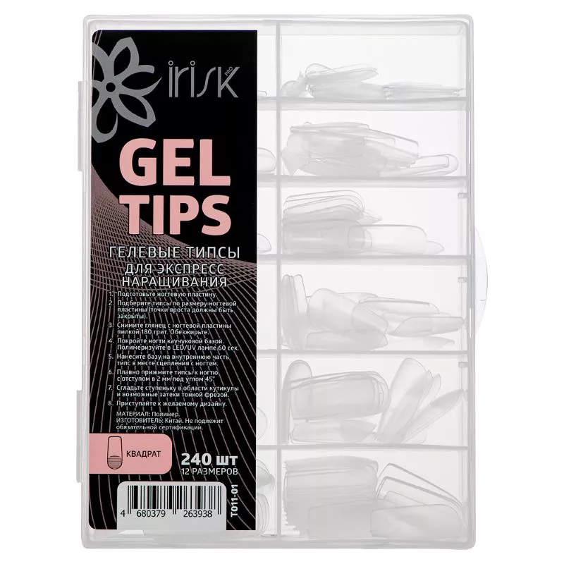 Гелевые типсы для экспресс наращивания Gel Tips Квадрат, 240 шт