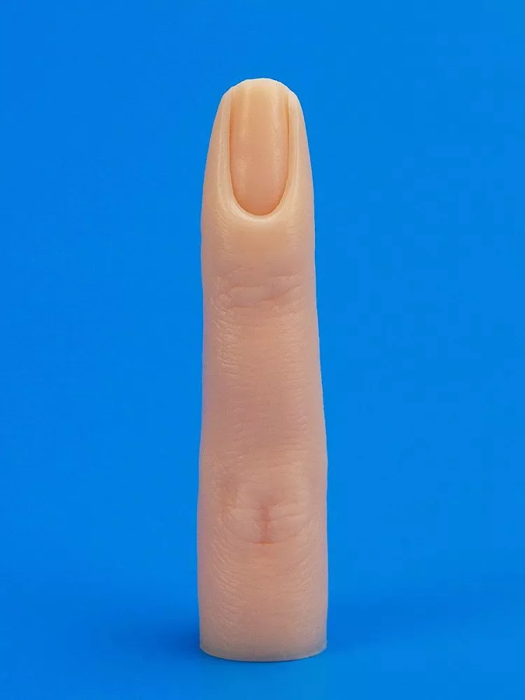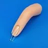 На пальце сформировано ногтевое ложе, в которое вставляются и надежно фиксируются отрывные типсы. Он обладает отличной гибкостью, полностью имитирует форму и размер пальца человека, легко поддается очистке.
