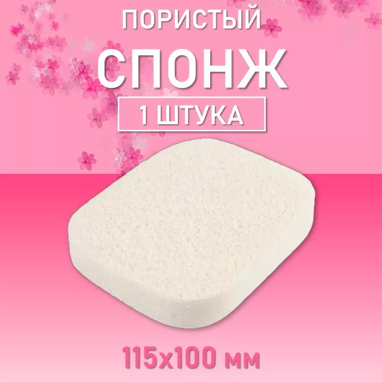 Спонж для умывания пористый, 115х100мм h20мм (02 White Прямоугольный)