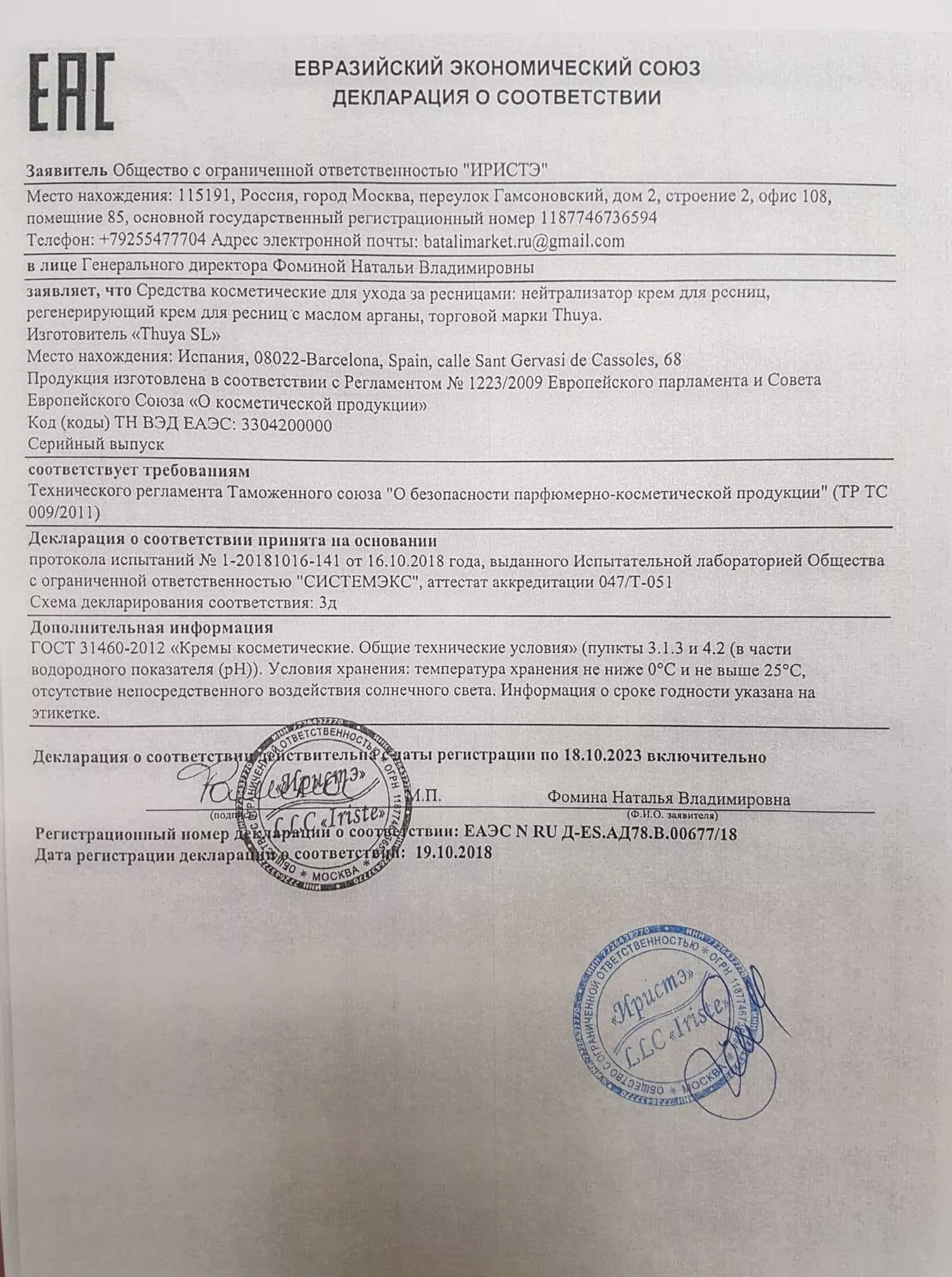 Thuya (Туя) - Регенерирующий крем для ресниц с маслом арганы, 15 мл 3