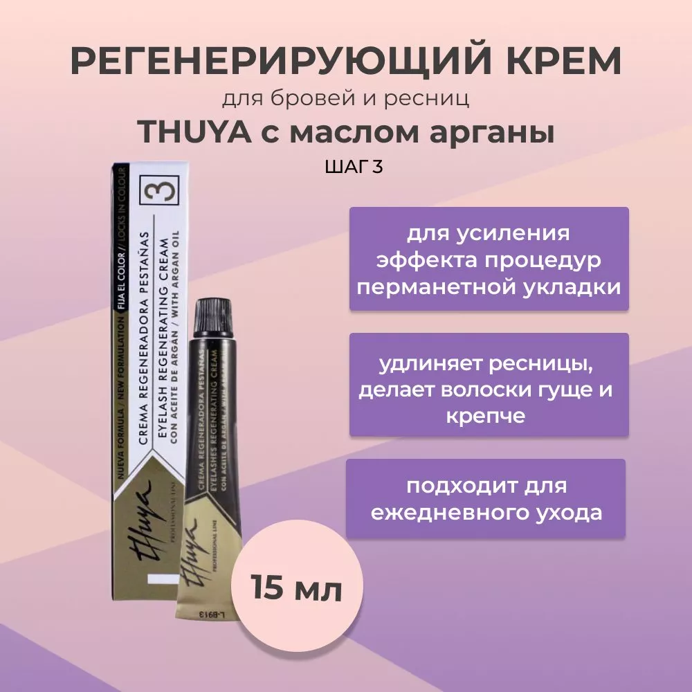 Регенерирующий крем Thuya для ресниц с аргановым маслом. Применяется для ресниц и бровей как для усиления эффекта процедур перманетной укладки, ламинирования и окрашивания, так и в качестве самостоятельного защитного и укрепляющего средства. Регенерирующий крем Thuya подходит для ежедневного ухода, делая Ваш взгляд уникальным.