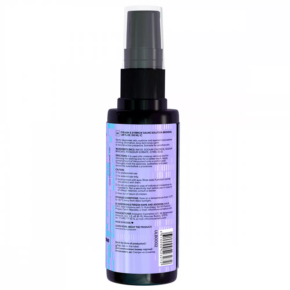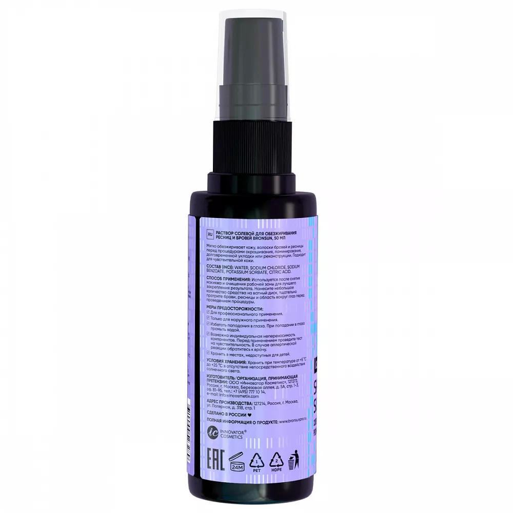 Раствор солевой для обезжиривания ресниц и бровей BRONSUN (Бронсан), 50 мл