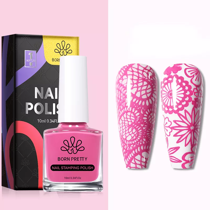 Лаки Born Pretty - качественные лаки для стемпинга, которые имеют высокую концентрацию пигмента в составе, благодаря чему смотрятся ярко и насыщенно. Обладают оптимальной консистенцией, легко ложатся на пластину или диск. Их преимущество - оптимальная скорость высыхания, не засыхают на штампе. Рисунок хорошо переносится на ноготок (даже самые мелкие детали остаются видны), имеет четкий контур и не смазывается после нанесения топового покрытия. Узоры особенно выигрышно смотрятся на ноготке, который покрыт контрастным цветом.