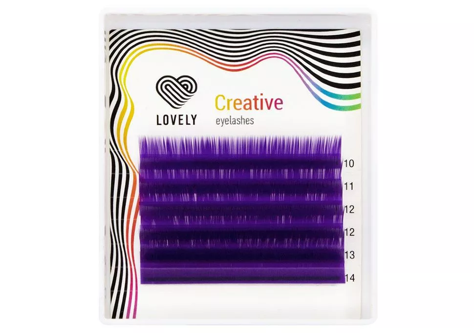 Ресницы цветные Lovely Mini MIX, Фиолетовые, 6 линий
