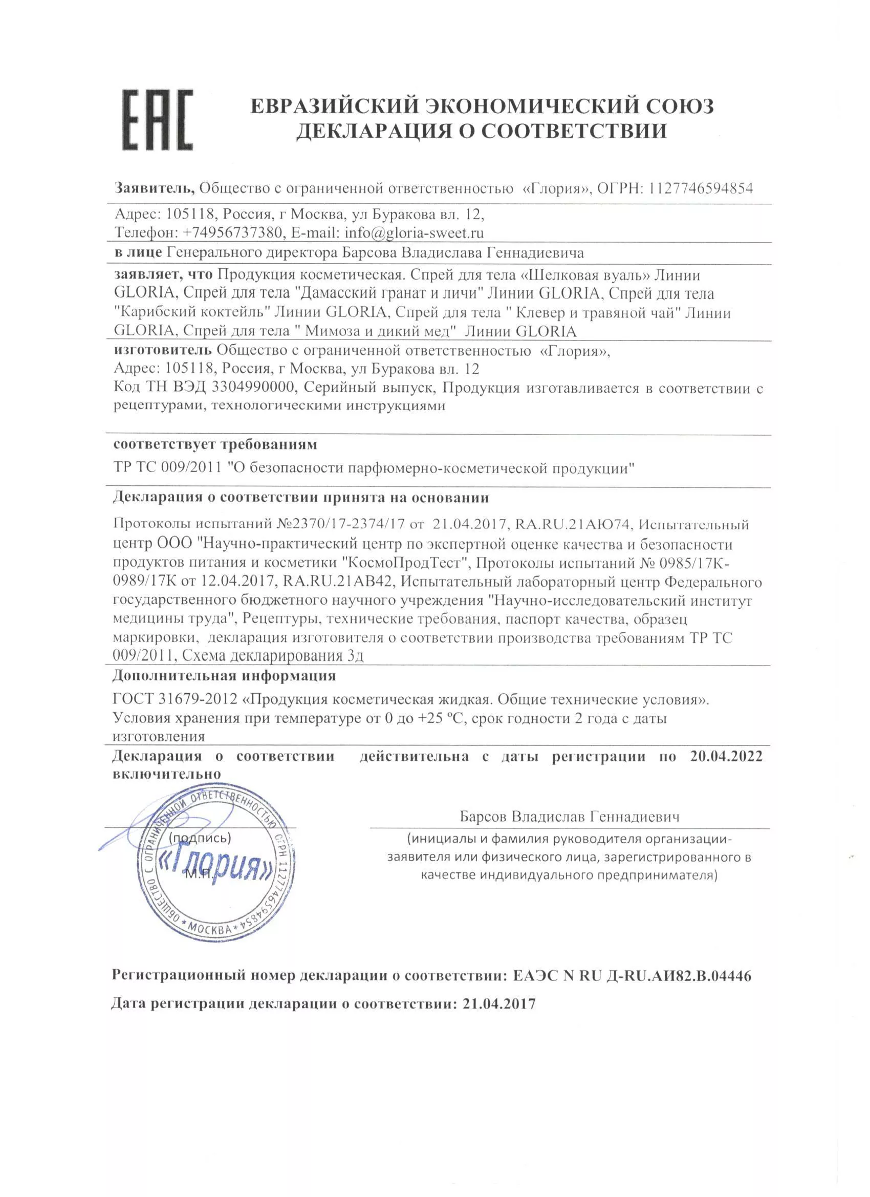 Спрей для тела Карибский коктейль, GLORIA (Глория), 110 мл