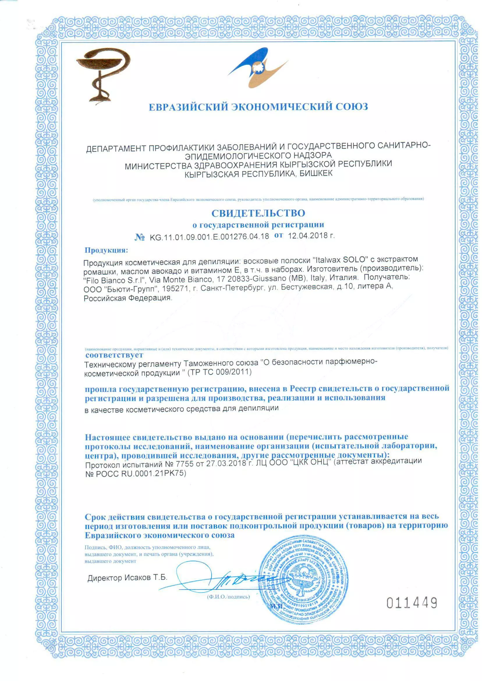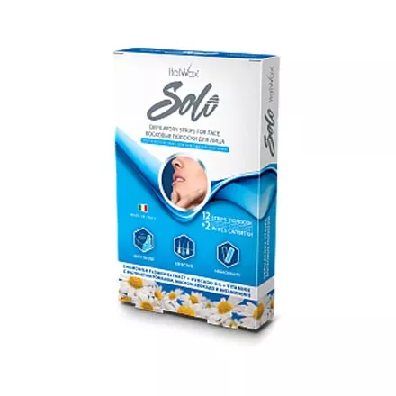 Восковые полоски ITALWAX Solo с экстрактом ромашки, маслом авокадо и витамином E (для лица) уп. 12 шт. + салфетки